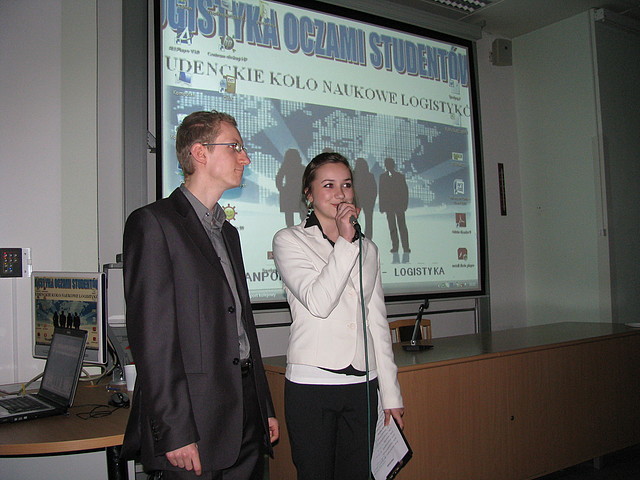 Swoje prezentacje przedstawili członkowie Koła: Jakub Pierścionek, Zygmunt Rydzik, Marcin Kędzior, Ewelina Stączek, Magdalena Pusz, Emilia Krzysztoń, Barbara Tompalska, Justyna Rak oraz Adrian Gładysz. Wśród prezentowanych przez członków Koła zagadnień były m. in. transport kolejowy i lotniczy, logistyka miejska, opakowania w logistyce, spedycja oraz autostrady. W konferencji wziął również udział Maciej Chrzanowski - przedstawiciel Koła Naukowego Przedsiębiorczości i Zarządzania Środowiskiem "Ekobiznes", który przedstawił temat wykorzystania crowdsourcingu i foresigtu w kontekście logistyki. Oprawę muzyczną przygotował Damian Ciupa, który zajął się również fotografowaniem uczestników konferencji. Pozostali członkowie Koła przygotowali salę, sprzęt multimedialny i poczęstunek dla przybyłych gości. Wszyscy spisali się na piątkę z plusem:-)