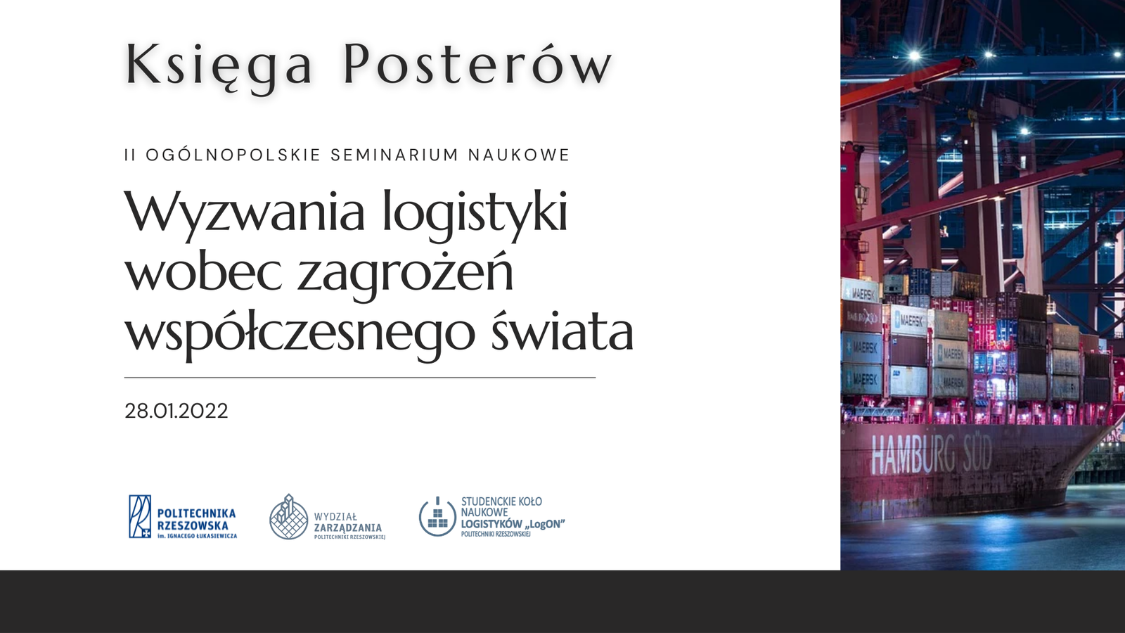 Studenckie Koło Naukowe Logistyków “LogOn” wraz z opiekunami naukowymi dr inż. Pauliną Bełch i mgr. Pawłem Bełchem zaprasza wszystkich pracowników i studentów Wydziału Zarządzania Politechniki Rzeszowskiej na sesję posterową organizowaną w ramach II Ogólnopolskiego Seminarium Naukowego „Wyzwania logistyki wobec zagrożeń współczesnego świata”.